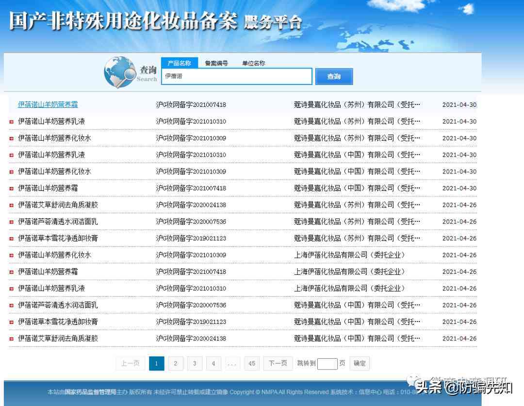 更加让人跌眼镜的是这家韩国的化妆品品牌,在中国销售的多款产品竟然是中国生产,还是代工!我们登陆国家药品监督管理局的国产非特殊用途化妆品备案服务平台,查询到伊蓓诺的产地是产自国内,主要的生产企业是蔻诗曼嘉化妆品(苏州)有限公司、科玛化妆品(无锡)有限公司、高丽雅娜化妆品(天津)有限公司,而高丽雅娜化妆品公司还曾受过好几次行政处罚。