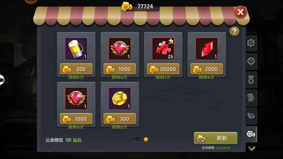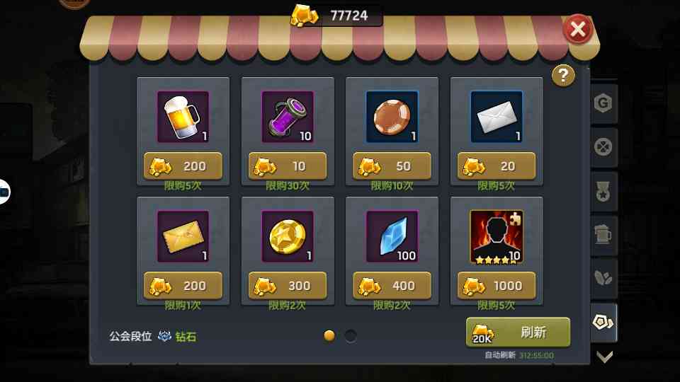 从图中可以看到.页能兑换的道具,除了啤酒外都是很一般的道具,那么我们就得留着更多的晶石去兑换后期开放的月币和红水晶,啤酒可以适量兑换
