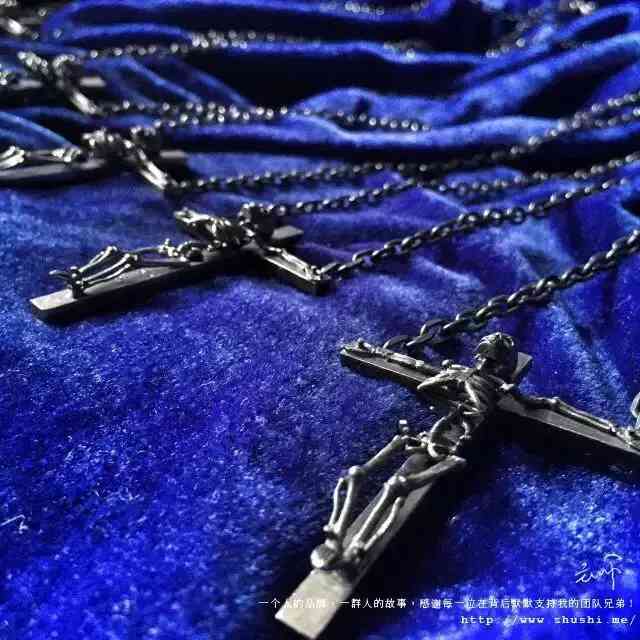 图为七宗罪骷髅十字架吊坠,黑色做旧工艺质感强烈