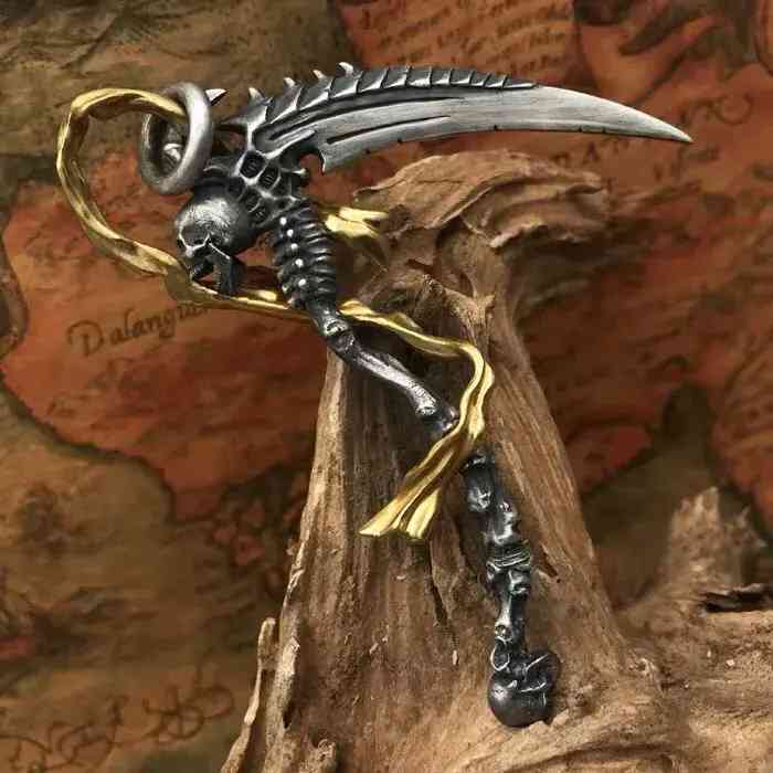 图为死神之镰吊坠,黑色的镰身细节满满,配18k金飘带视觉冲击极强