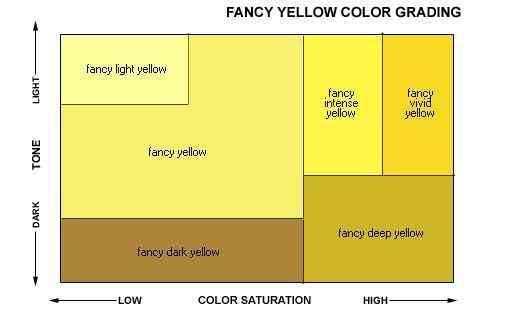 不同颜色的钻石会在颜色级别上加色彩后缀,如,Fancy Intense Yellow(浓彩黄):