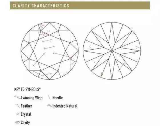 GIA大证中附有钻石净度描述图,其上标注了所鉴定钻石的瑕疵分布位置及类型: