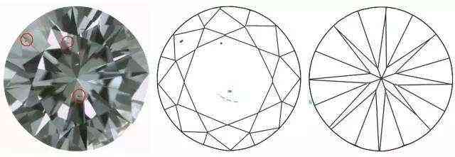 Symmetry(对称性):指钻石各切面的排列,对称性的偏差使得射入的光线或钻石本身存在的光线不按照设计的的路径运动,导致漏光或光线反射效果差。