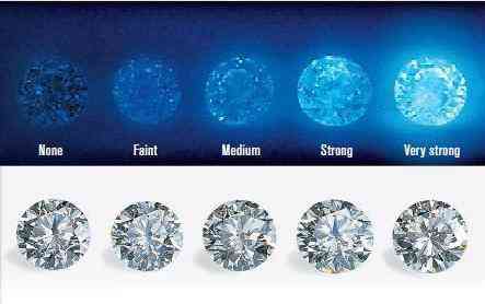 钻石荧光的强度等级分为none(无)、faint(微弱)、medium(中等)、strong (强)、very strong(非常强)等级别;