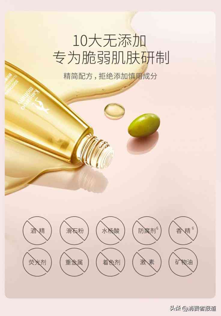 值得关注的是,在原料端,袋鼠妈妈对原料的管控更加严格,并深入监督从原料种植到生产的每个环节。从配方工艺出发,为产品搭建起安全、高效的研发壁垒。袋鼠妈妈还坚持“拒绝添加慎用禁用成分,专为妈妈脆弱肌肤研制”。以原料筛选为例,依据中国《已使用化妆品原料目录(2021年版)》,普通日化产品原料一共有8千余种,经过毒理性、刺激性、生殖毒性等诸多因素的严格筛选,袋鼠妈妈仅从中挑选了400多种原料。产品生产后委托SGS检测、小鱼亲测等第三方专业权威机构进行检测,给予妈妈们安心保障。