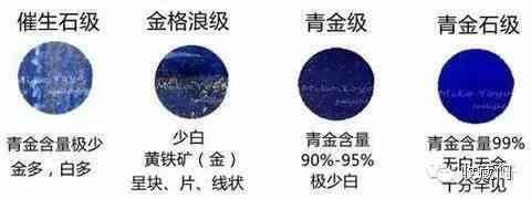 青金石分为四个级别:青金石级、青金级、金格浪级和催生石级,这四个是青金石最专业准确的分级术语,很多朋友不能直观的从表面分辨清楚,示意图分享给大家 ▼