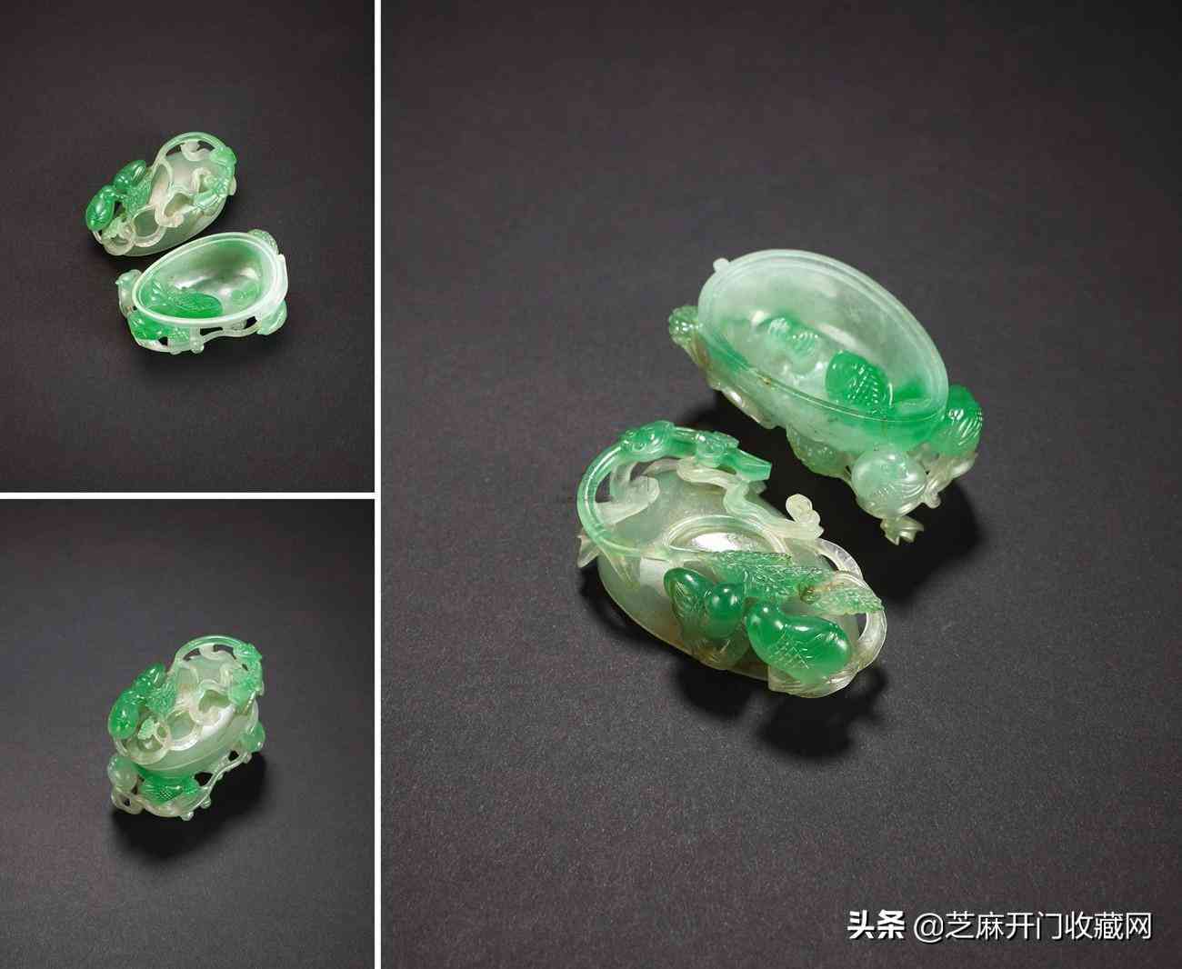 清乾隆翡翠雕金玉满堂盖盒,估价:RMB 3,800,000 ~ 5,800,000,成交价: RMB 4,370,000