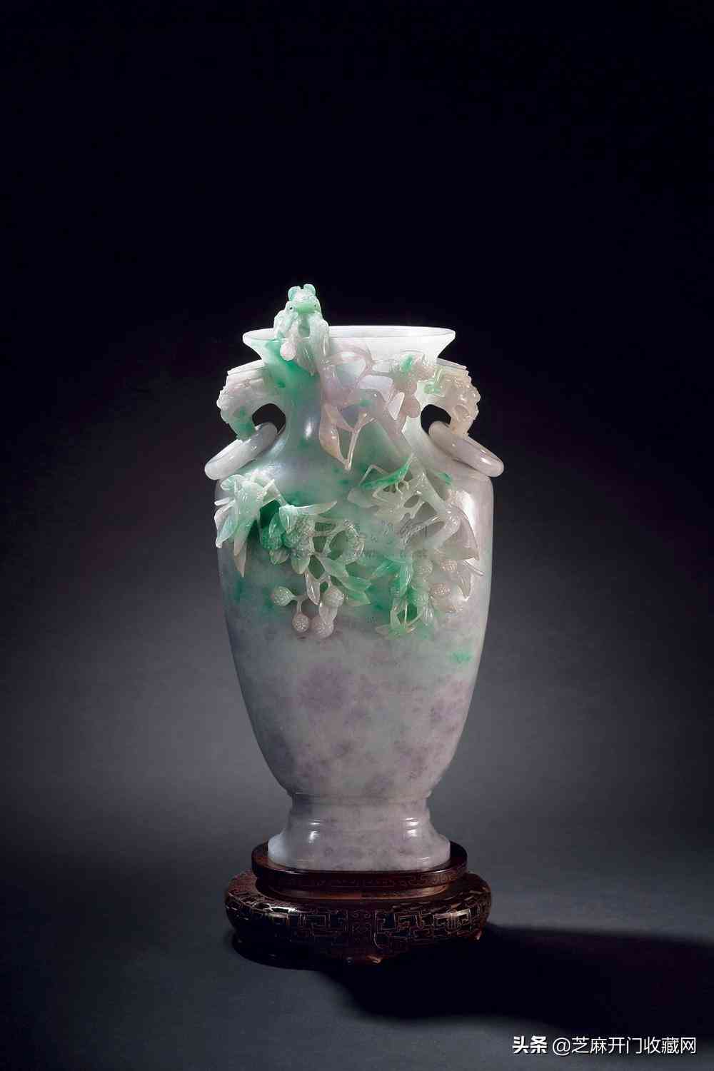 清翡翠雕折枝花果兽耳衔环瓶,估价:RMB 600,000 ~ 800,000,成交价: RMB 4,256,000