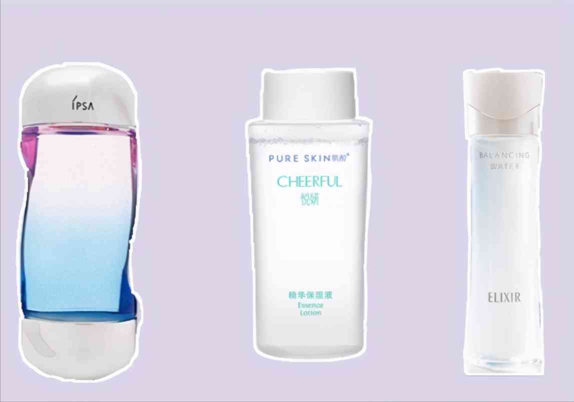 从左至右,ipsa流金水、pure skin精华水,怡丽丝尔水油平衡(这个差评)