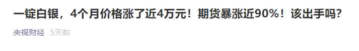 “我们前几天是8元/克,现在是9.5元/克,涨幅不算大了”,黄铂金加工中心负责人告诉记者,白银价格涨势还好,黄金涨势更快,之前店里卖290元的一个36.3克的纯银手镯,现在涨到了345元,涨了55元。