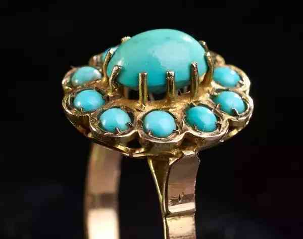 首先绿松石是由铜、磷、铝、铁和水形成的一种磷酸盐矿物质,一般硬度5~6,密度2.6~2.9,折射率约1.62。因为绿松石的硬度不高,所以非常适合用来做戒指的戒面!
