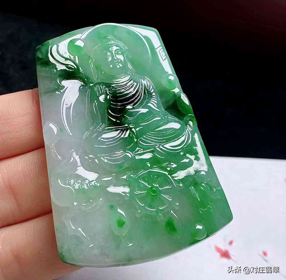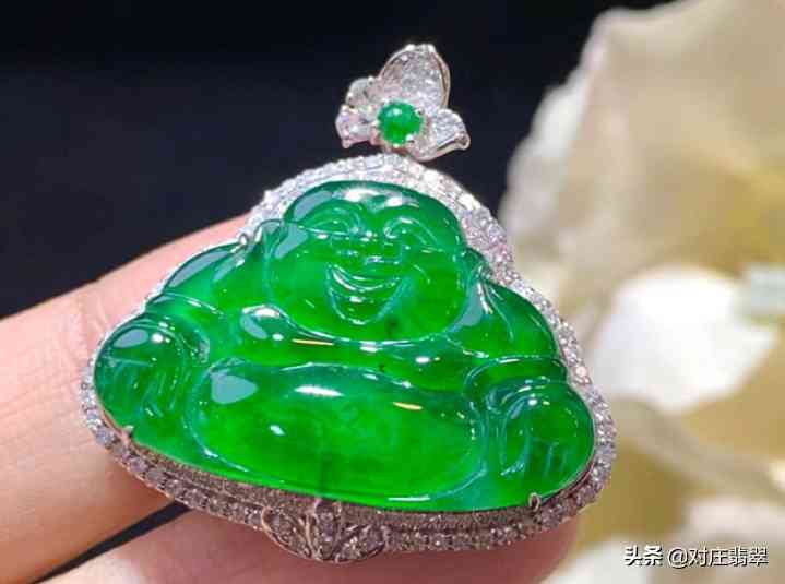 如果不介意产地,也对种水厚度没太多要求,只看重颜色表现,也可以考虑危地马拉翡翠,例如这枚佛公,在镶嵌和室内环境的衬托下,颜色表现还可以,但危地马拉特征较为明显。