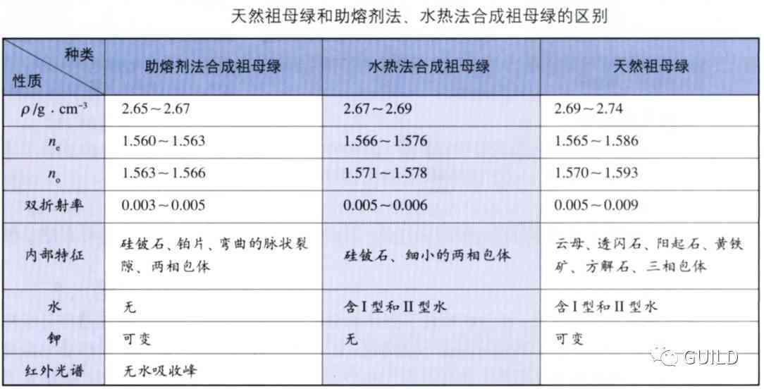 鉴于合成祖母绿主要有两种方法,即助熔剂法和水热法,其折射率、密度等物理特征与天然祖母绿很接近。