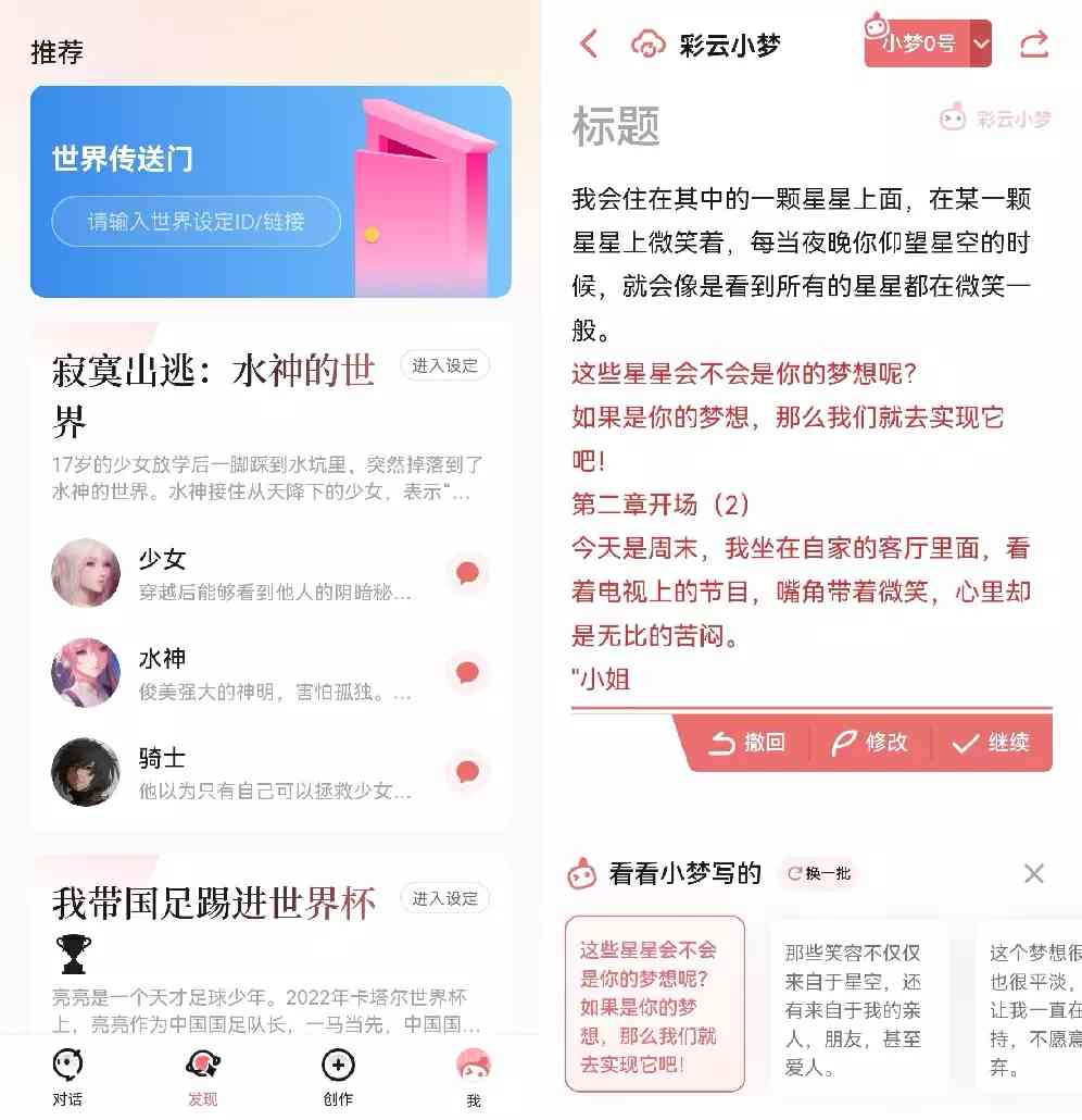 去年推出的“彩云小梦”可以自动续写小说故事,受到了年轻用户的欢迎。据彩云科技的创始人&CEO袁行远,现在彩云小梦里用户创建的世界有400万个,里面的人物超过1000万个,每个月有100万的活跃用户在其中探索。