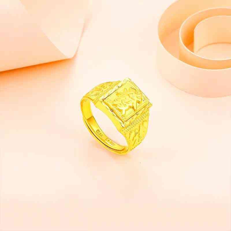男士黄金戒指常见的款式有福字戒、发字戒、龙纹戒、光圈戒等,不同的黄金戒指款式都有着特殊含义与说法,比如福字黄金戒指,代表着幸福、福气等等,寓意佩戴者幸福安康,福气满满。