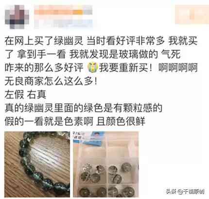 某宝甚至有用玻璃制作的假“绿幽灵”,质地就和小时候玩的玻璃弹珠一样,据某些上当的买家描述,里面的充填物其实是绿色色素,大家切莫贪小便宜吃大亏。