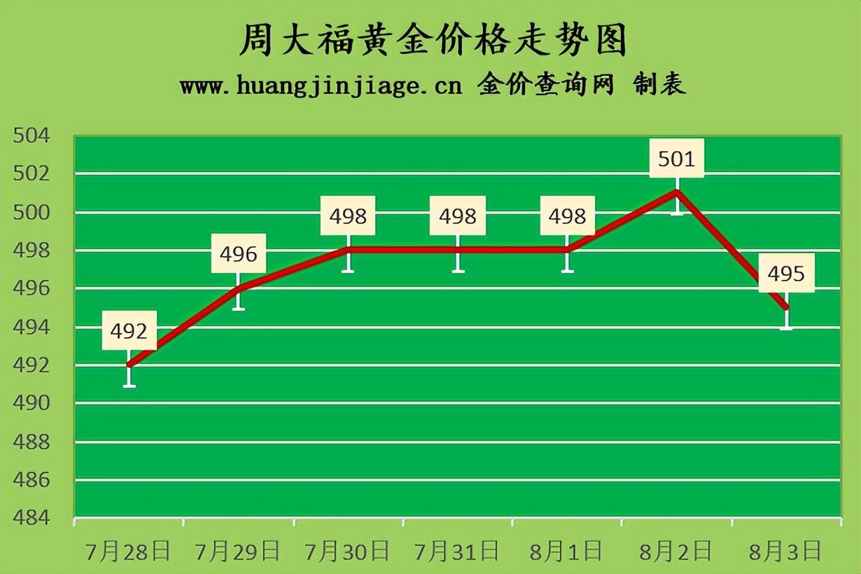 周大福黄金价格495元/克(跌6元),六福黄金价格495元/克(跌6元),周生生黄金价格495元/克(跌8元),金至尊金价495元/克(跌6元),谢瑞麟金价495元/克(跌7元),老凤祥黄金价格500元/克(跌7元),老庙黄金价格495元/克(跌5元),菜百金价492元/克(跌3元),周大生金价495元/克(跌6元),中国黄金价格492元(跌3元),金大福金价491元/克(跌6元),潮宏基金价495元/克(跌6元),周六福黄金价格496元/克(跌6元)。