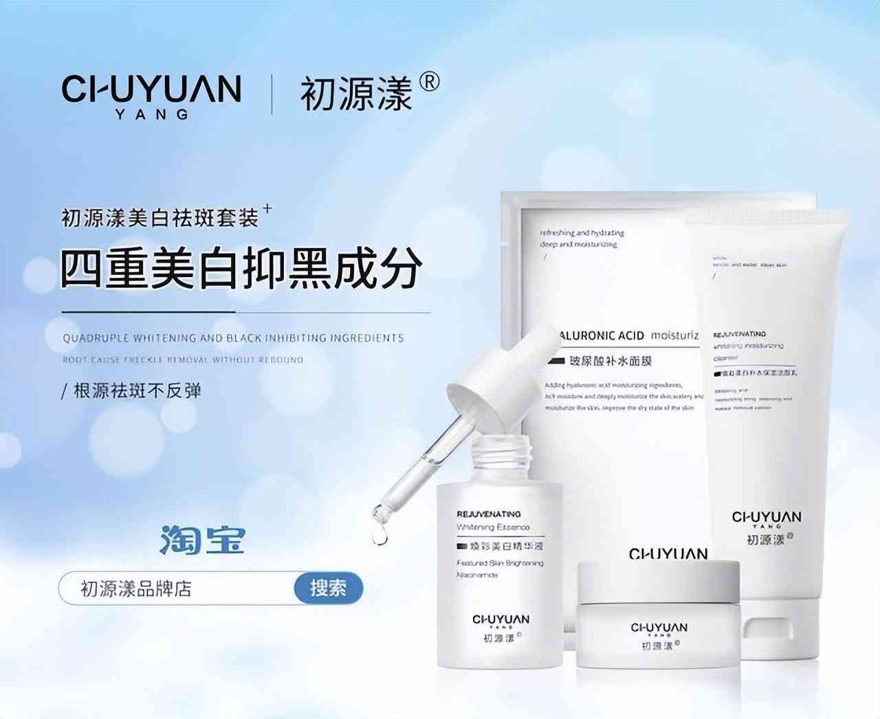 初源漾美白祛斑套装最高套系为四件套,其中包含了焕彩保湿洁面乳、焕彩美白精华液、焕彩臻雪美白祛斑霜,以及搭配了同品牌玻尿酸补水面膜。