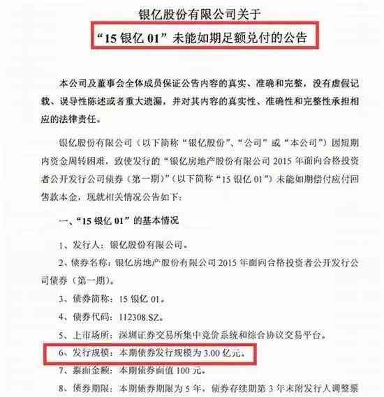 去年12月底,银亿股份发布公告称,因短期内资金周转困难,致使发行的“银亿房地产股份有限公司2015年面向合格投资者公开发行公司债券(.期)”(以下简称“15银亿01”)未能如期偿付应付回售款本金。