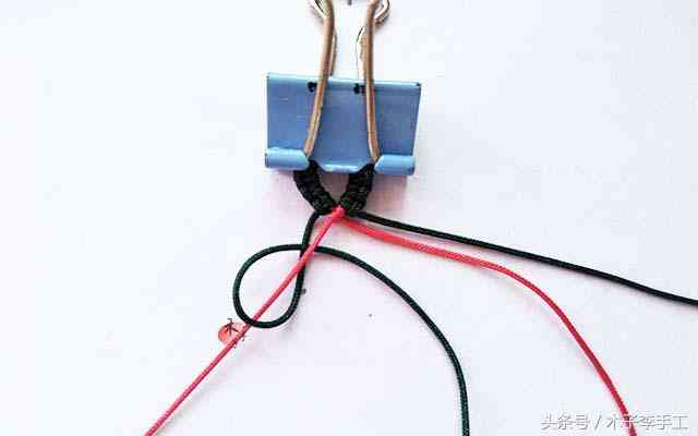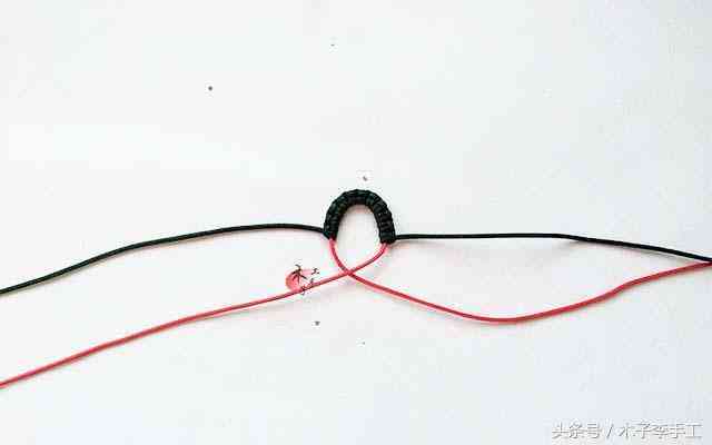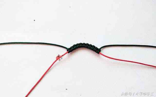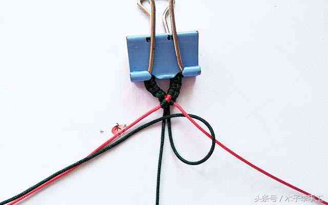 4、左红线做轴,左绿线做斜卷结,如图,做斜卷结.步