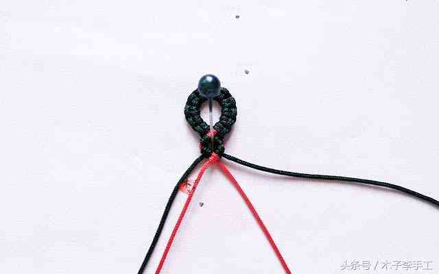 10、用中间两根红线做斜卷结,接下来重复以上所有步骤,编到合适的长度,剪线头,穿珠收尾,完成