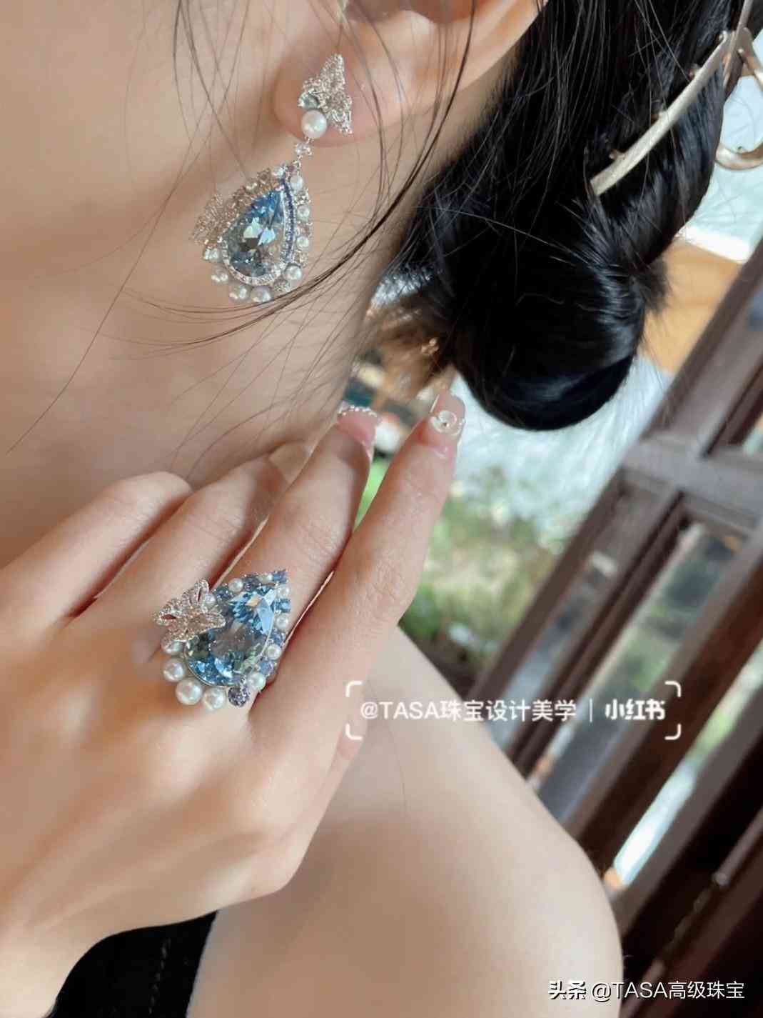 今日分享的这对海蓝宝采用了珍珠和钻石镶嵌的蝴蝶造型,围镶而成,灵动又仙气飘飘,整体造型活灵活现。