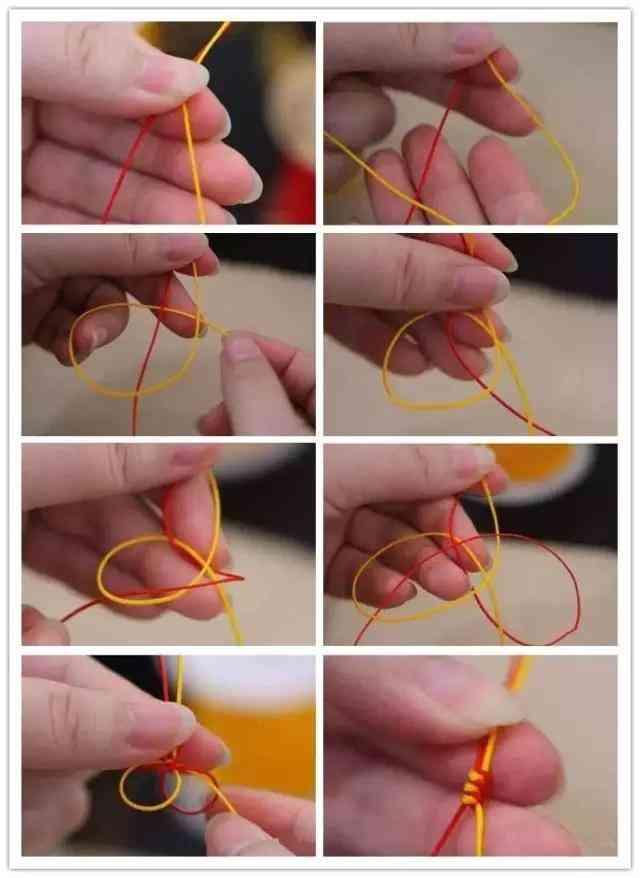 ⑧这样,一左一右两个结,一组完整的平结打成,接下来,重复上述步骤。