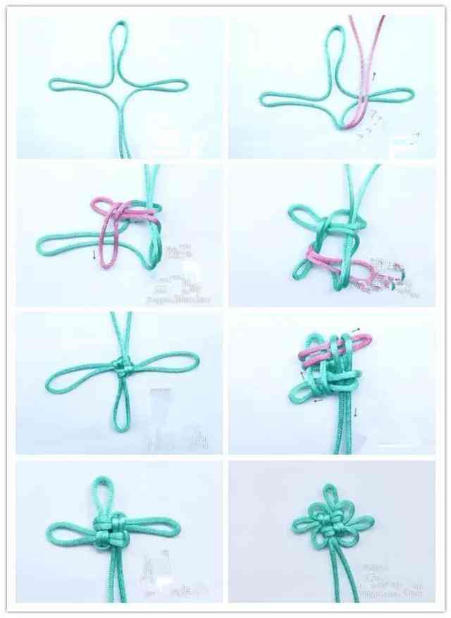 玉米结的起头一般是两条绳做十字交叉,然后用甩出来的四个绳头头开始操作,所以这也是网上教程最不容易看清楚的。
