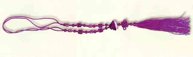 凤尾结一般用于最下面的弟子珠前面的收尾的部分,也有不加子弟珠直接用凤尾结的,凤尾结像个草鞋,也有人称草鞋结。