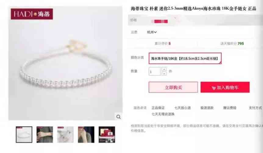 下面有两串珍珠手链,使用的都是2.5~3mm规格的珍珠,属于同一品牌,并且在相同的电商平台上销售,猜猜它们的价格分别是多少?