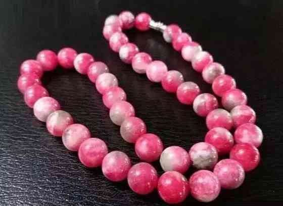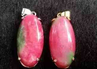 桃花玉,也称桃花石,学名蔷薇辉石。桃花玉质地细腻、色彩斑斓,硬度又和翡翠相似,也被称为“粉色的翠”。石质微透明,富有玻璃光泽。石中含多种金属矿物成分,同一石上呈现互不渗透的不同颜色或互相渗透的混合颜色。经加工抛光,呈鲜艳的桃红色并间杂黑色的纹饰。