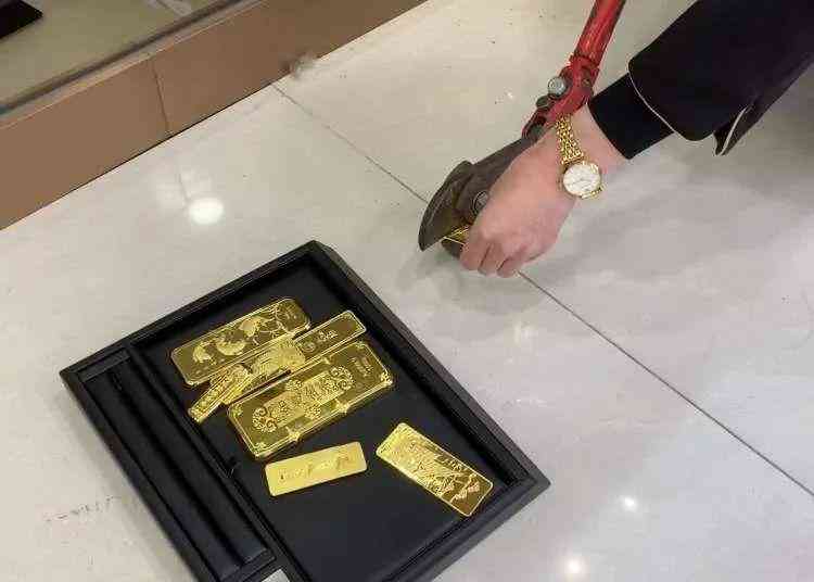 在回购后的金条上剪出明显的痕迹。
