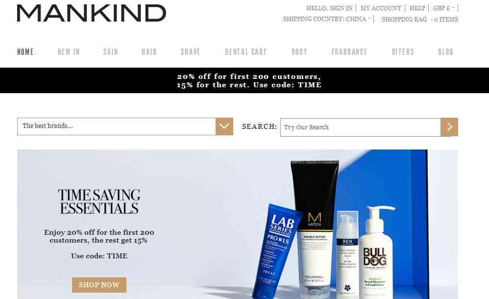 以男士护肤品为主,在英国电商巨头http://HUT.COM旗下,和look fantastic属于同门。特色品牌是AESOP,货全,活动多,入手的好地方。