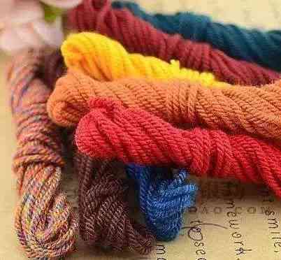 这种棉线绳由10根以上细棉线手搓而成,比较结实耐用,颜色很具有民族特色,尤其是最后收尾的时候可以把棉线采开,形成一个很漂亮的流苏。一般都像上图这样一条2.0米卷成一根,价格比其他线绳贵一些。
