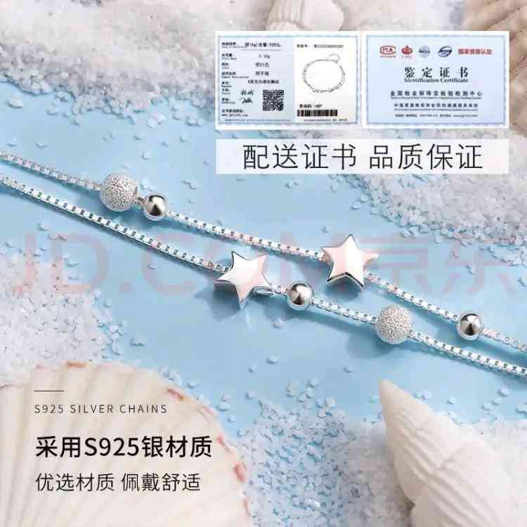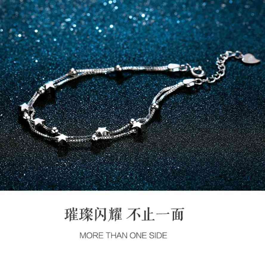 我相信很多女孩都喜欢星空元素吧,这款是双层星星点缀腕间,呈现着不同的光芒,夏日小清新解放灵动的气息,让我们一起把星星戴在手上吧,这样的美好,身为小仙女的你一定不要错过哦! 材质是925纯银,价格:158元。而且佩戴舒适不会褪色,戴上就是妥妥的小仙女啦~