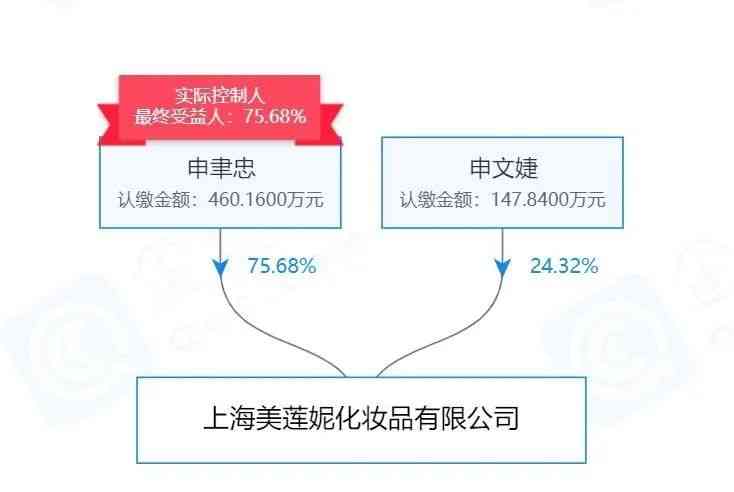 根据公开资料显示,美莲妮生物成立于2016年11月25日,注册资本为800万元,由上海美莲妮化妆品有限公司(下称美莲妮化妆品公司)认缴60%,以及自然人申聿忠认缴40%。