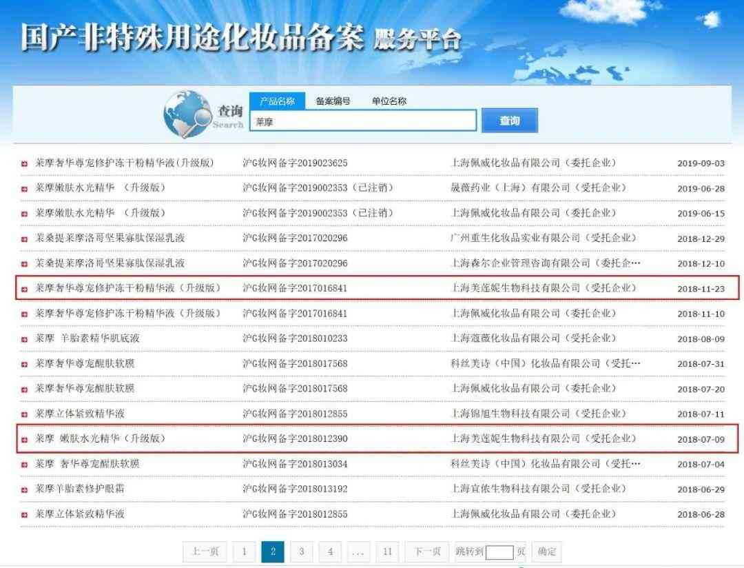 据国产非特殊用途化妆品备案服务平台信息显示,美莲妮生物曾代工莱摩品牌旗下的奢华尊宠修护冻干粉精华液(升级版)和嫩肤水光精华(升级版)两款产品。而莱摩正是知名美妆连锁唐三彩的自有品牌之一。