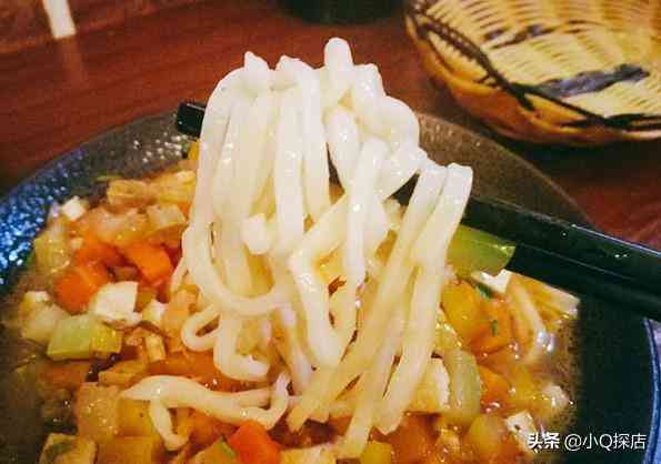 哨子面,里面是各种蔬菜丁,有西葫芦、红萝卜、白萝卜、香菇、西红柿等等等等,吃起来会有点甜,还带有一丝丝的辣味,很香,面条是店家自己擀的细面条,很劲道也很入味。