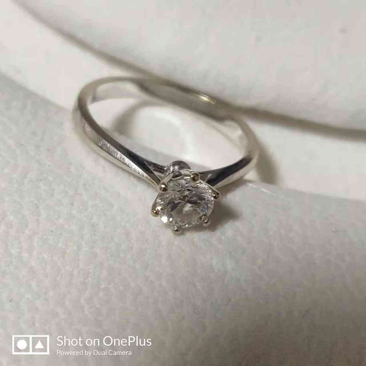 这个单钻的是周大福的品牌,10年前网购的。打折后的价格是3600元,20分的大小。别看钻石很小,但是却是异常闪亮,工作休闲戴着低调又精致,我觉得很值。虽然我的一些同事说这么小的钻石有点贵了,但是我觉得这个是真的。