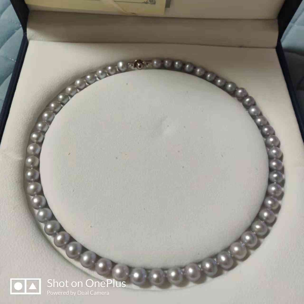 这个灰色珍珠项链购买只是十几秒钟,当时我无意间打开一个卖珍珠的直播间,主播大喊:“日本Akoya真多麻海水珍珠,只有这种拥有梦幻银灰蓝色的.别的Akoya才被称为“真多麻”。才卖899元”。