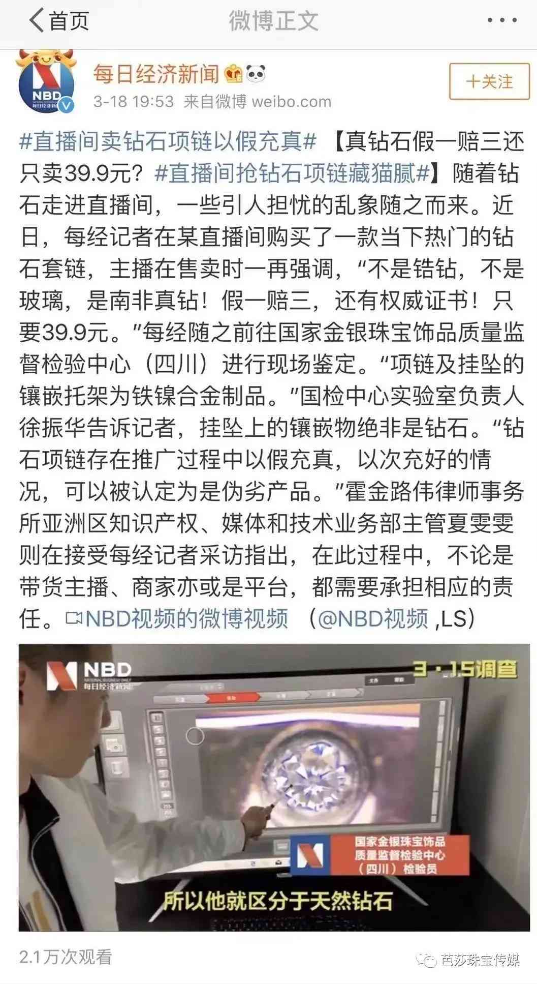 前不久某直播间惊现 39.9 元的钻石,主播在售卖时一再强调“不是锆钻,不是玻璃,是南非真钻!假一赔三,还有权威证书!只要 39.9 元”