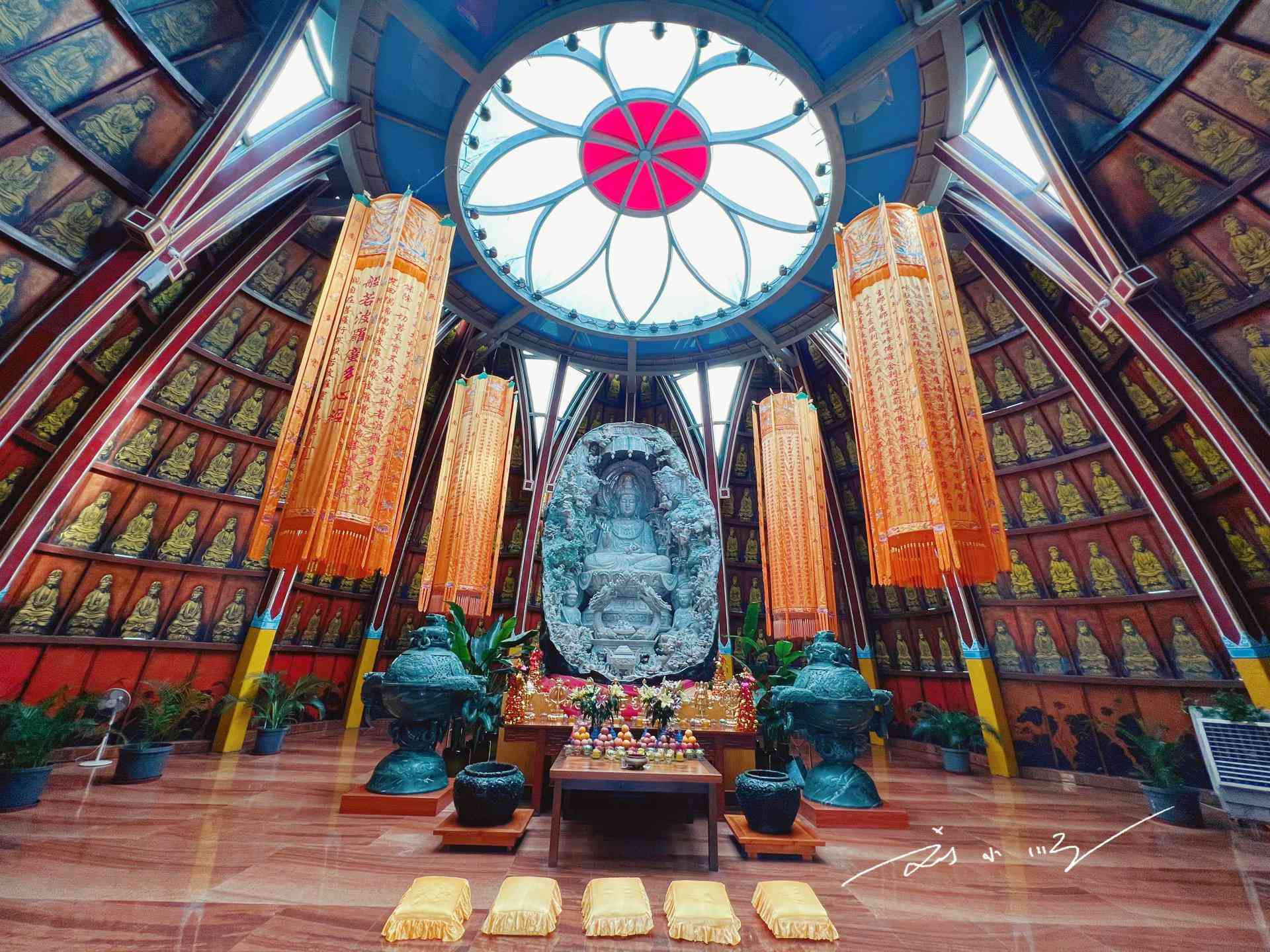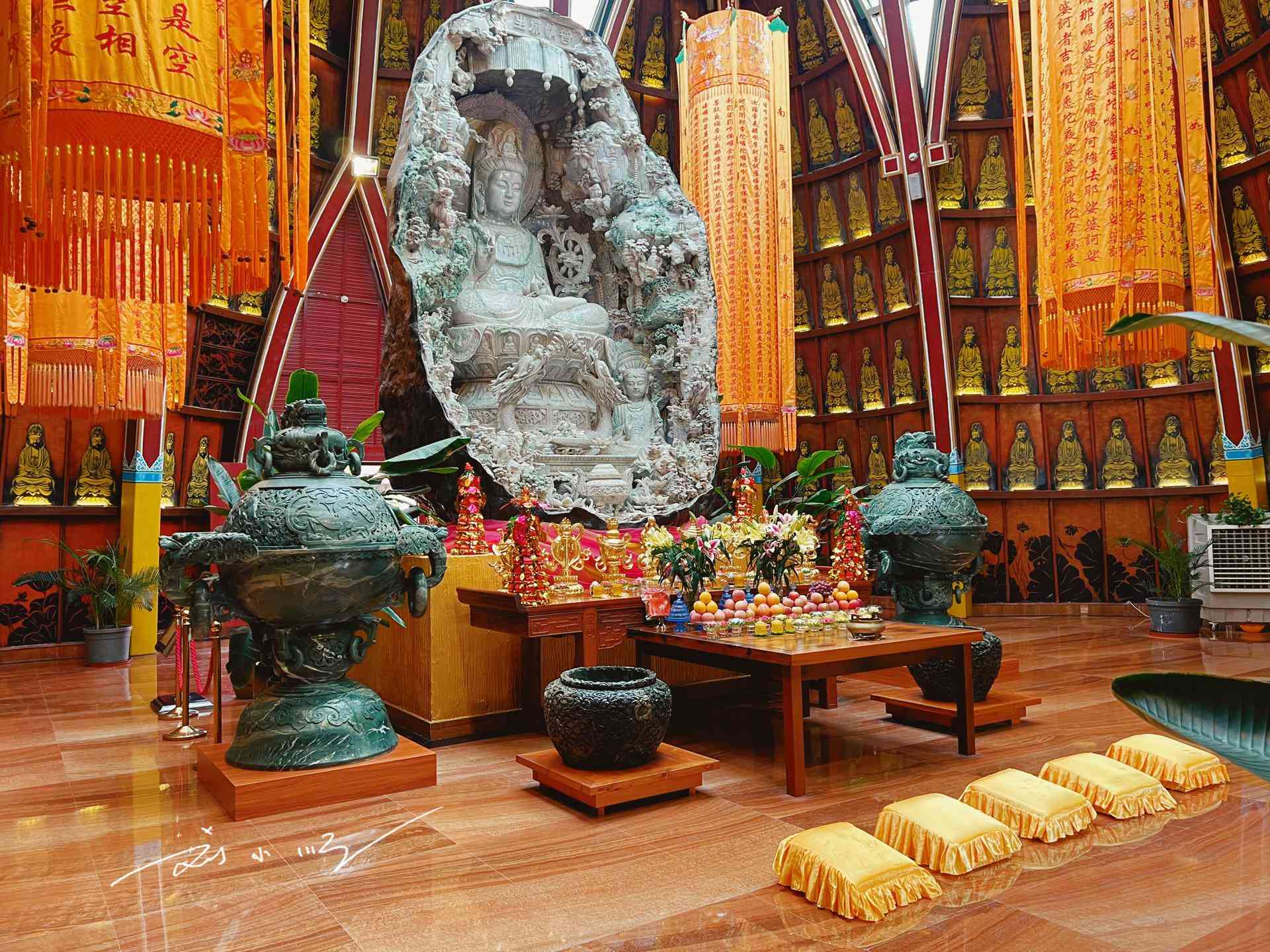 这尊巨型“翡翠玉观音”就在一座名叫“自在天”的宫殿里,而这座宫殿的外形做成了莲花形状,感觉格外庄严。