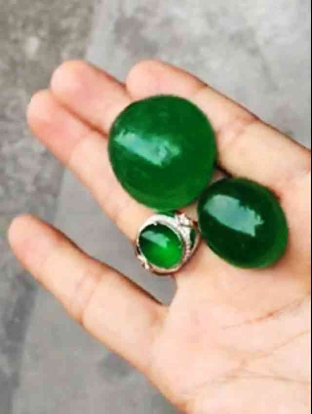 .帝王绿翡翠,一刀下去,出来了,出来了,颜色全部进去了。