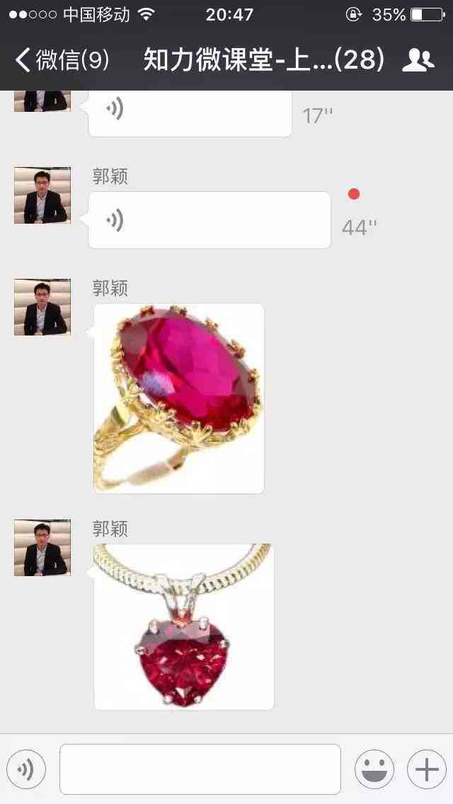 此次微课堂主要有两部分组成,.阶段为嘉宾分享时间,郭颖老师以语音+图片方式进行授课,在开始阶段还特意录了小视频和大家打招呼,郭颖老师用幽默风趣的语言将专业的珠宝知识讲得简单易懂。第二阶段为互动答疑,让我们先来看下知力微课堂学员们的脑洞有多大!