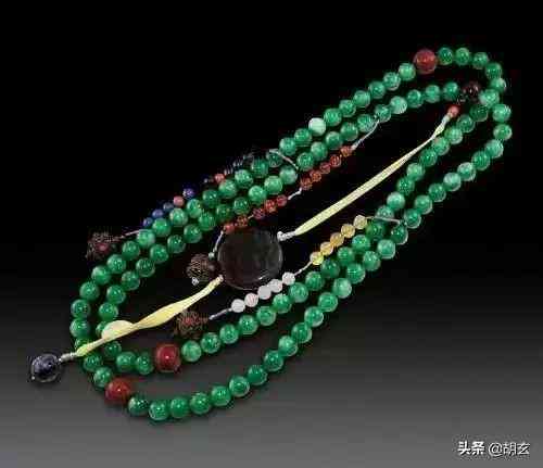 它由27 颗极为珍贵的翡翠珠串连而成,相传是从清宫廷中外流而出,每颗珠子直径15.4mm至19.2mm不等,相配绝伦,郁绿柔亮,且均出于同一块原石。