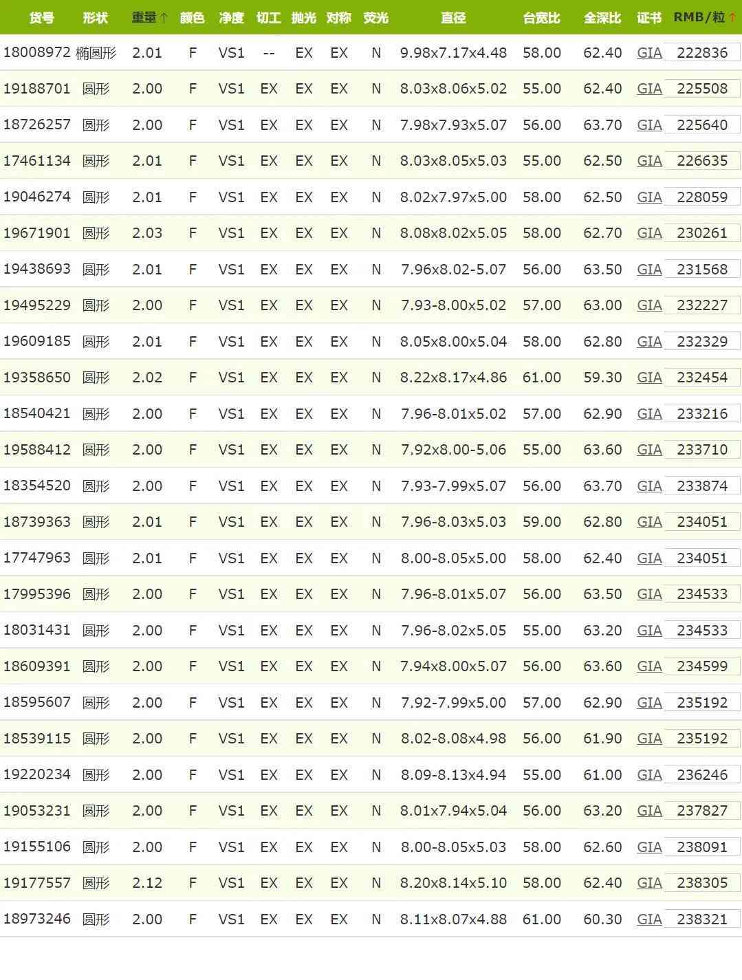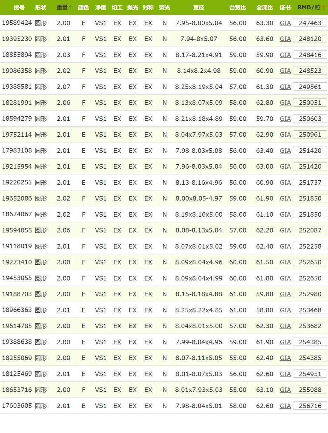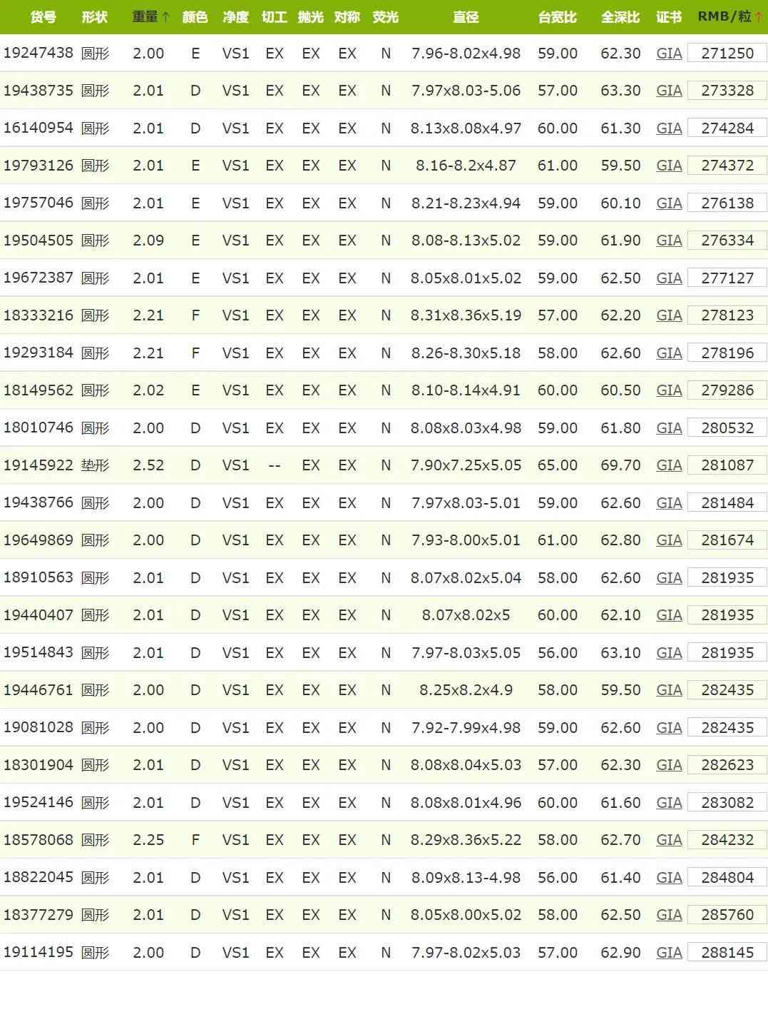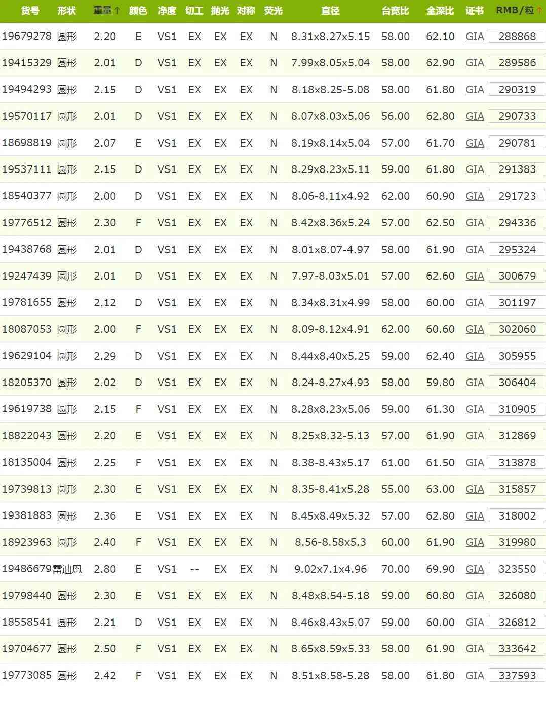 2022年9月GIA 2克拉DEF色VS1钻石价格表