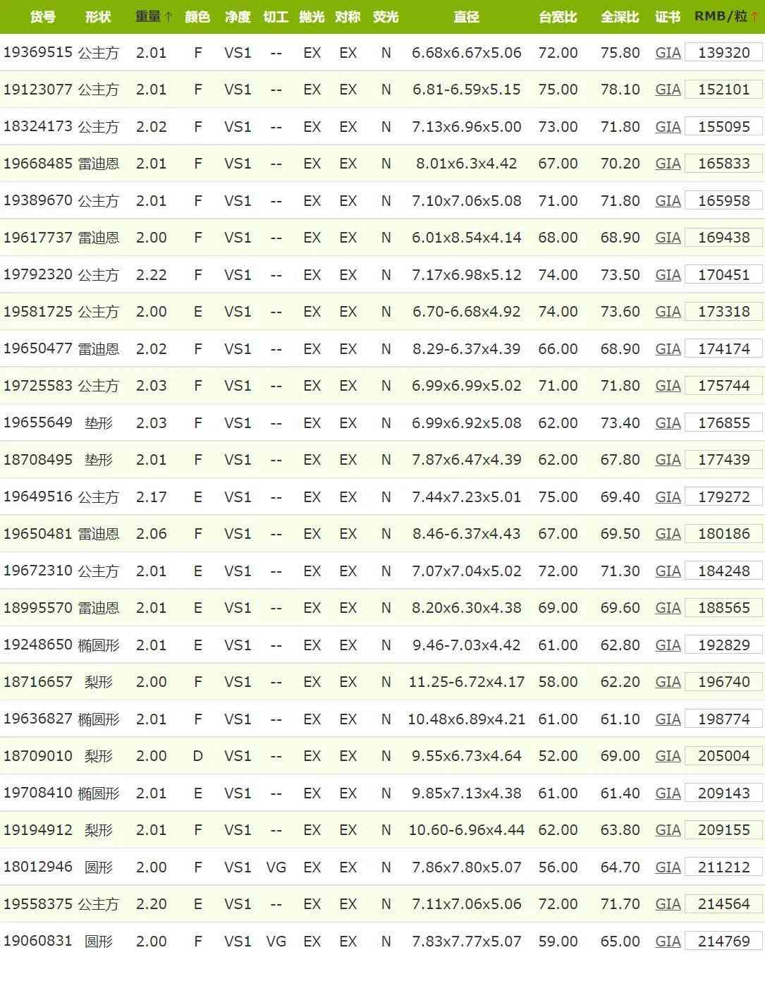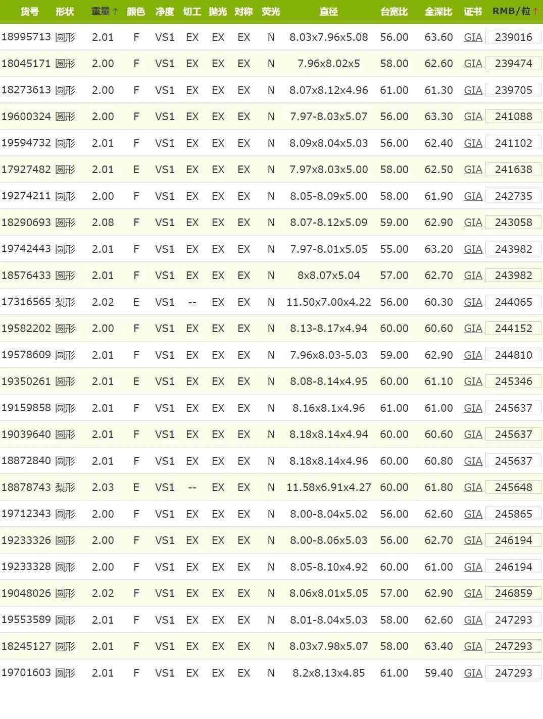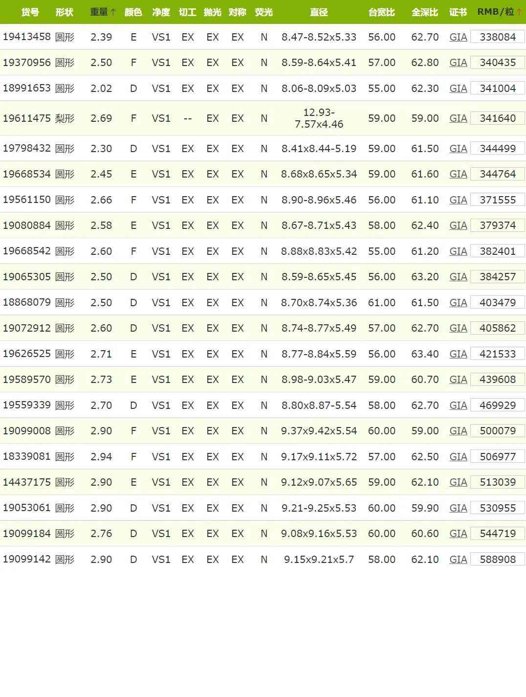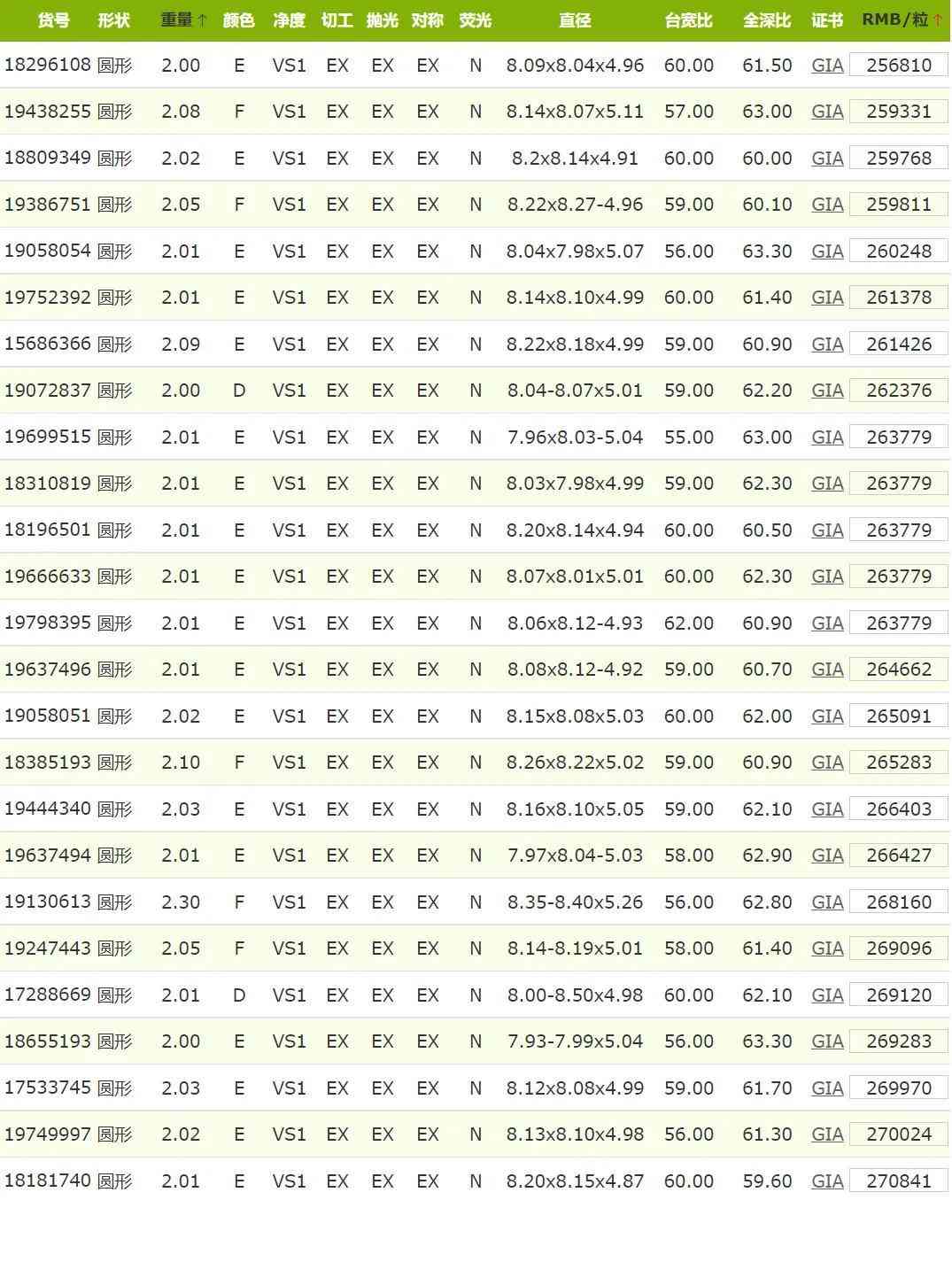 2022年9月GIA 2克拉DEF色VS1钻石价格表