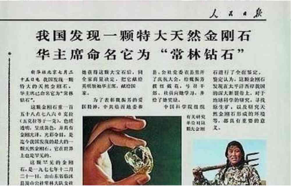 1978年,人民日报刊发了一则消息,称华主席接到民众发现的一颗特大自然金刚石,并将其命名为“常林钻石”。