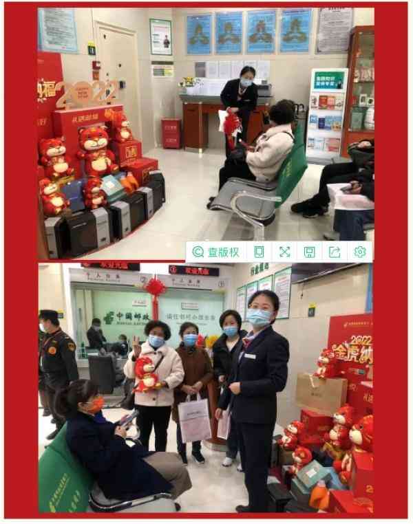在这里,“金虎纳福,邮储有礼”系列活动正在火热开展,凡是活动期间进网点办理业务的客户均可领取一份精美小礼品,网点员工还为办理存款理财,购买保险、贵金属等产品的客户提供了抽大奖服务。