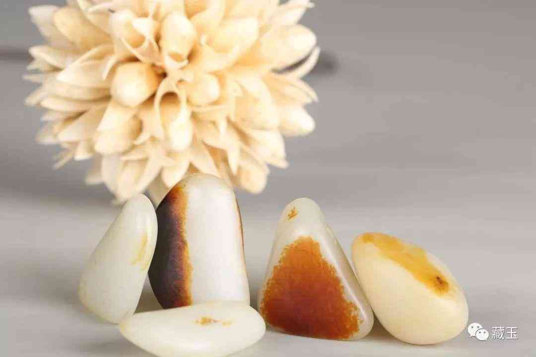 然后就是皮色。皮色是指籽料表皮上的颜色。籽料因为在河床中冲刷,一些矿物质会沁入到玉质表面,就形成了皮色。
